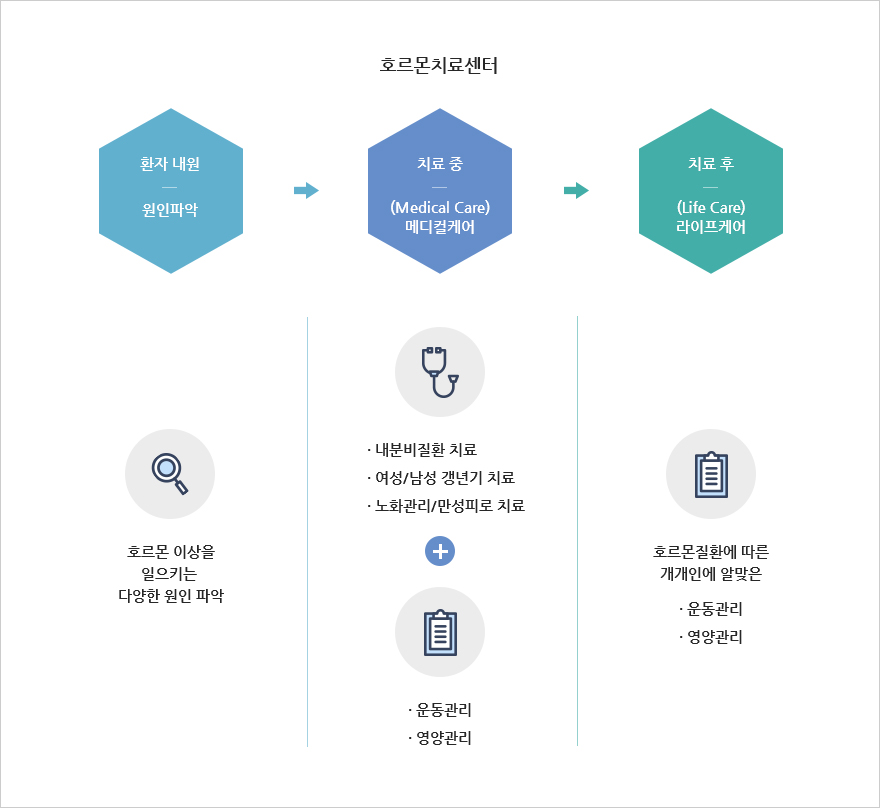 호르몬치료센터에서는 각종 호르몬 이상으로 발생되는 질환들을 진단하고,