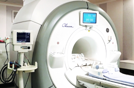 자기공명영상검사란 자장을 발생하는 커다란 자석 통속에 들어가 고주파를 발생시켜 신체부위에 있는 수소원자핵을 공명시켜 각 조직에서 나오는 신호의 차이를 컴퓨터를 통해 재구성하여 인체의 구조를 단면으로 재구성해 내는 검사입니다. 이 때 이용되는 자기장과 고주파 수는 비전리 방사선인 라디오 고주파로 인체에 해가 없으며 체내 연부조직의 대조도가 뛰어나 인체의 해부학적 구조의 변형 및 기능의 장애, 병리학적 정보를 정확하게 파악할 수가 있어 여러 가지 질환의 진단 및 치료에 많은 도움을 주는 검사입니다.